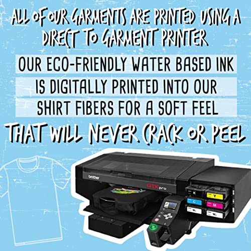 Our eco-friendly water-based ink prints directly into our shirt fibers for a smooth feel that provides a less vibrant, lived-in look. (No cracking or peeling like screen printing or iron-on transfers)